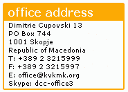 The office of DCC is located at Dimitrie Cupovski 13 at the Economic